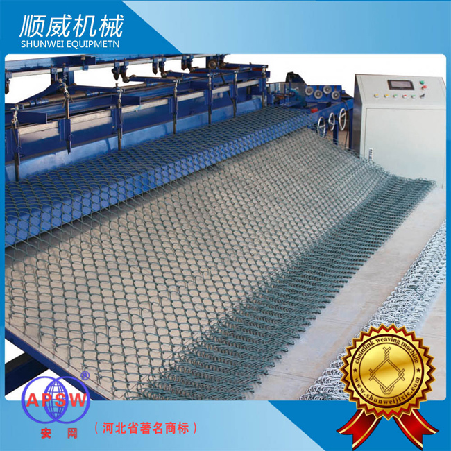 順威勾花網機可編織絲徑1.4毫米至4.5毫米,網孔25毫米至100毫米的鍍鋅勾花網、包塑勾花網,生產效率每小時80至100平方米。廣泛應用于邊坡防護、礦山支護、交通圍欄、環境保護、運動場建設等領域。